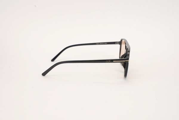 A combinação da armação preta com lentes marrom-claro evoca perfeitamente essa ideia: uma base sólida, escura, com um brilho súbito, quente e discreto, como o tom marrom-dourado suave da lente.